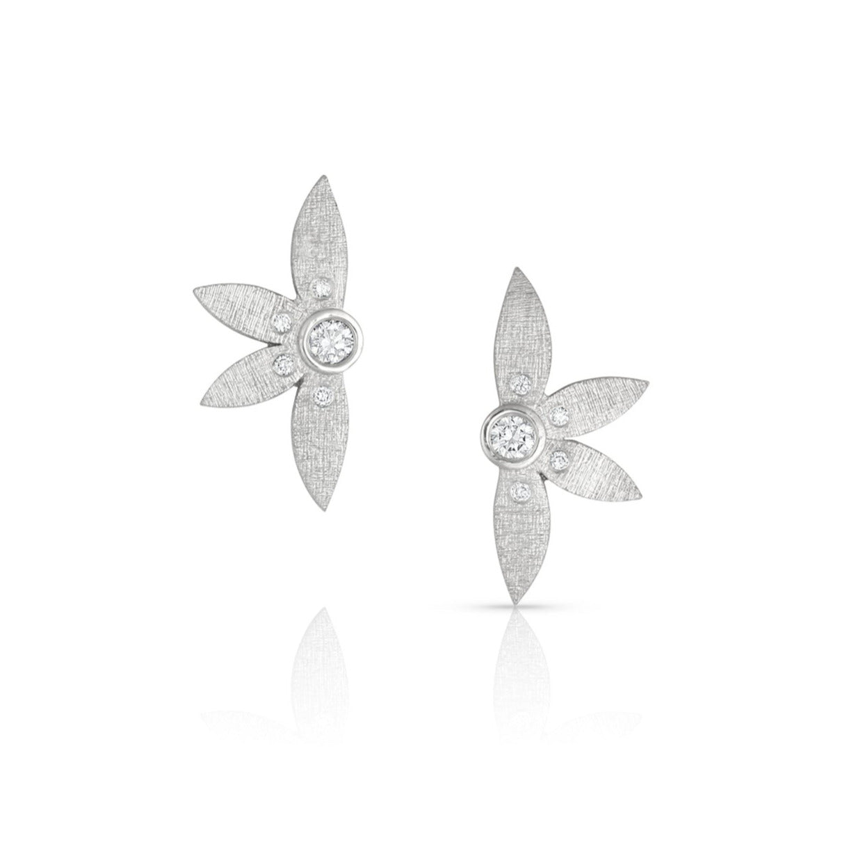 Platinum earrings with diamonds-.14ctw. Texture finish
